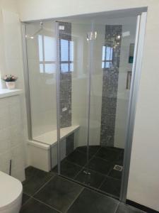 מקלחון חזית קבוע ודלת הרמוניקה מתקפלת לפי מידה של חברת BATHLINE. לרכישה באתר bathline.