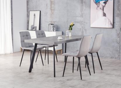 פינת אוכל יוקרתית דגם אמרטו משולבת מתכת ודמוי בטון מבית היוצר של ויטוריו דיוואני. המערכת כוללת 4 כיסאות חזקים ונוחים במיוחד המשתלבים במערכת האוכל בצורה מושלמת הכיסאות מרופדים בבד קטיפתי 100% סינתטי.