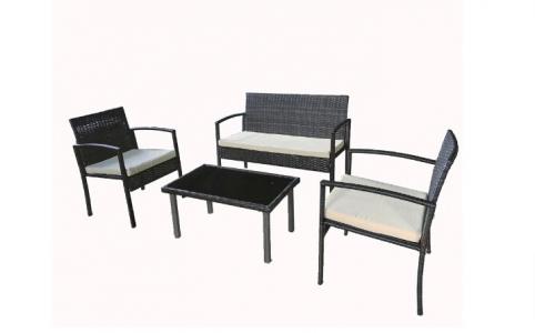 ריהוט גן 4 חלקים עיצוב נקי דגם ברונו שילוב מתכת וראטן סינטטי PE גוף המערכת צבע אפור בהיר עם כריות מושב אפור כהה. לרכישה באתר שופרסל.